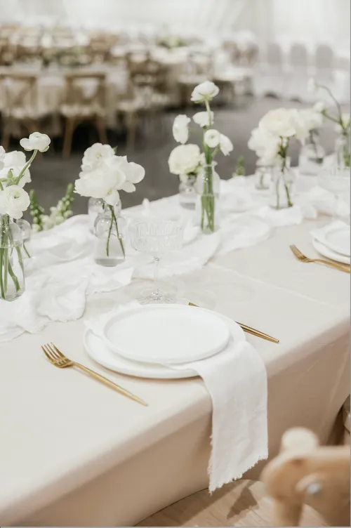 Choose the perfect dinner and dessert plates, flatware, napkins, and cups to complement your day. Our team will prepare, deliver and set everything in place on the morning of your wedding. Once your celebration concludes, we’ll return to pick up the dinnerware.